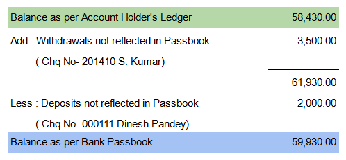 Sometimes, Balance amount as per Record maintained by an Account Holder of Bank for a Particular Bank Account shows a mismatch with the Balance as per Bank Statement/Bank Passbook at the end of a Particular date.