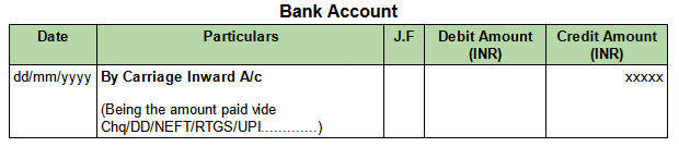 Let's discuss about the procedure of Journal Entry and Ledger Posting for Carriage Inward Expenses, when payments are made through Bank Account.